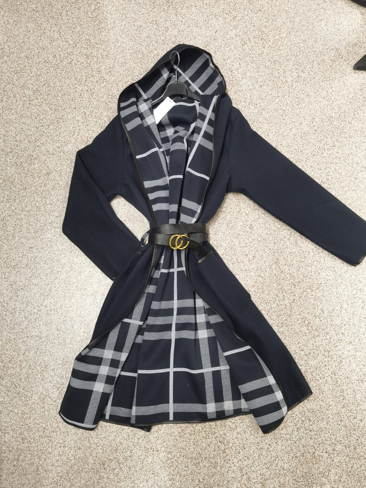 Palton dama clasic, cu buzunare, marime universala corespunde SML, si cu o curea eleganta, ce accesorizeaza tinuta, si scoate in evidenta talia.