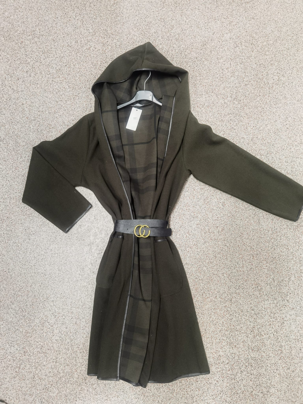 Palton dama clasic, cu buzunare, marime universala corespunde SML, si cu o curea eleganta, ce accesorizeaza tinuta, si scoate in evidenta talia.